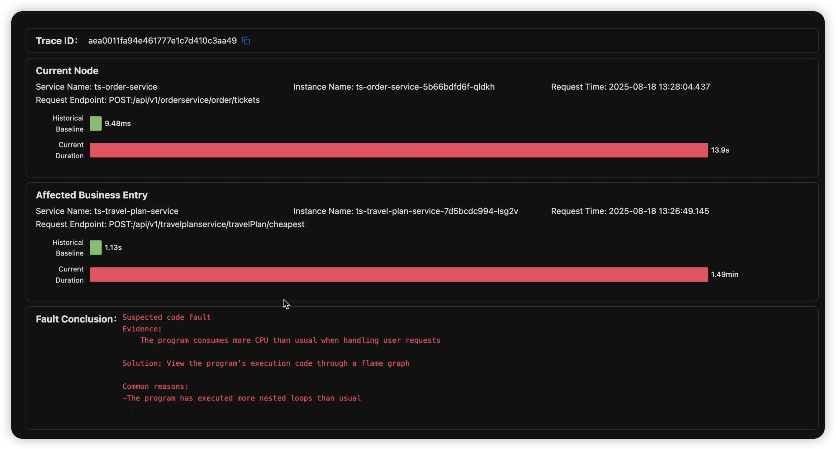 Therefore, when you discover a service is slowing down, you no longer need to manually switch panels and investigate logs one by one. Just ask one question: