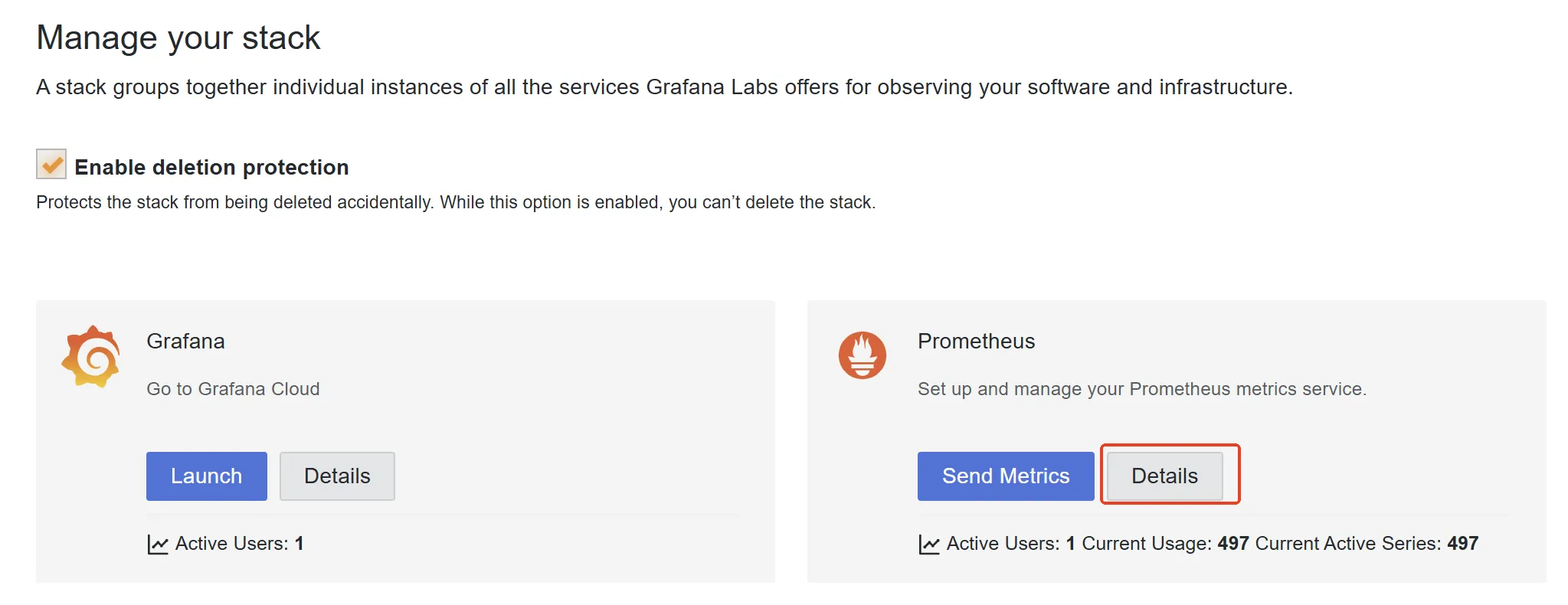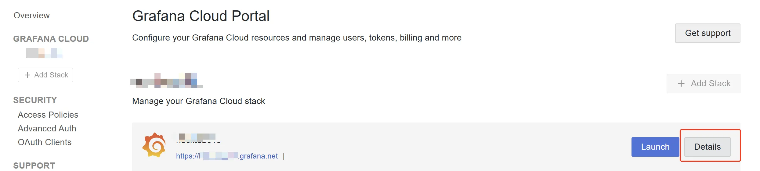选择Grafana Cloud Stack的 Detail。
