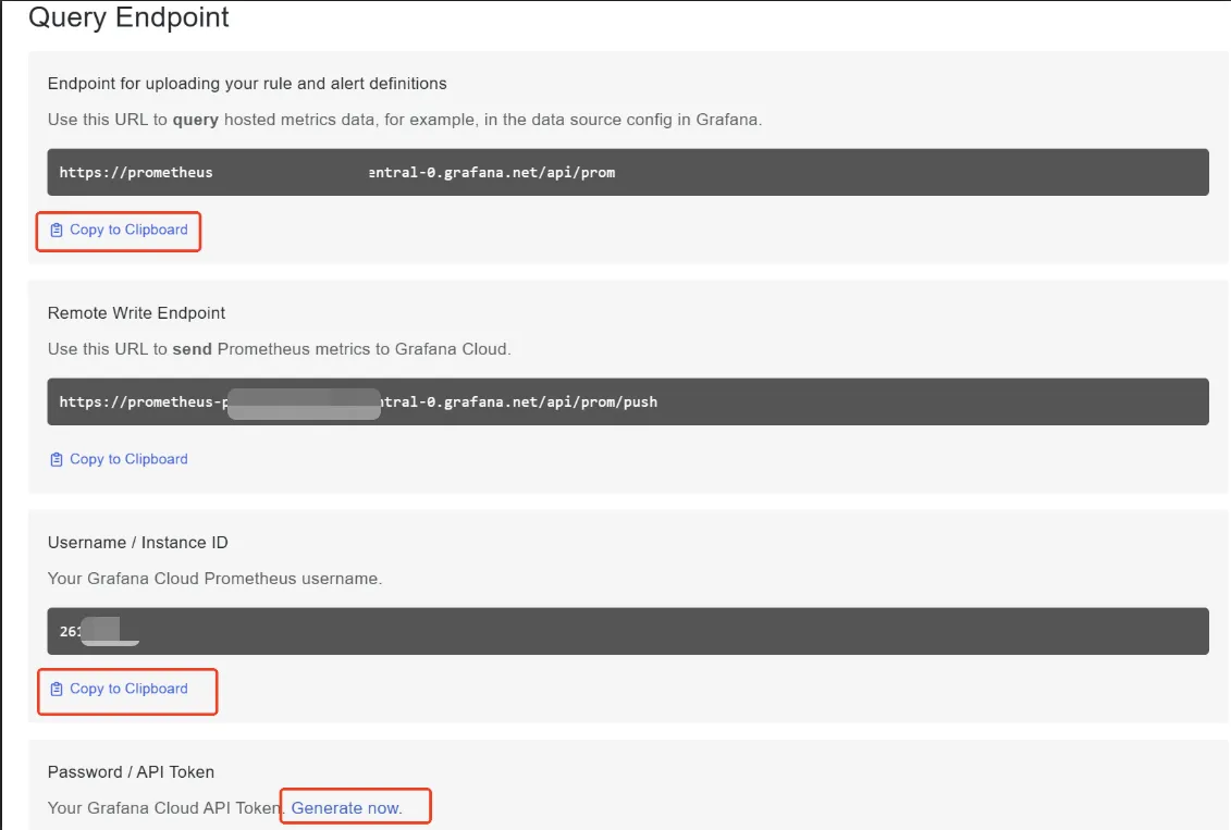 PrometheusAddress | (可选) Prometheus地址,用于查询拓扑图 | http://prometheus-xxxxxx-xxxx.grafana.net/api/prom/push |